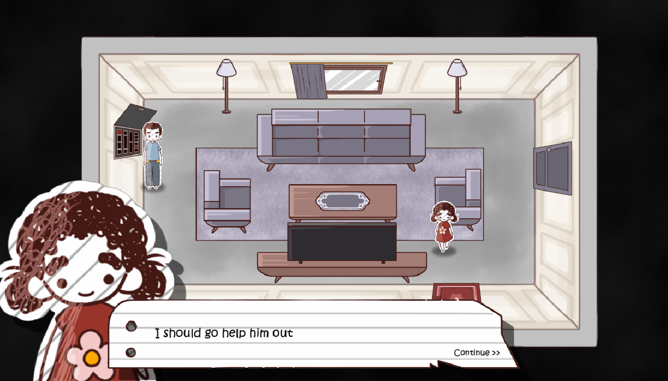 You play as a small paper character wandering through her home, moving between emotional states shaped by the people around her. A calm walk through familiar rooms slowly shifts as encounters with family members trigger anger, anxiety, and emotional numbness. Each state changes how the character moves, how the environment reacts, and how safe the world feels.